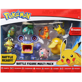 Pokemon Battle Figure 8-Pack - Comes with 2” Pikachu, 2” Bulbasaur, 2” Squirtle, 2” Charmander, 2” Meowth, 2" Jigglypuff, 3” Loudred, and 3” Psyduck