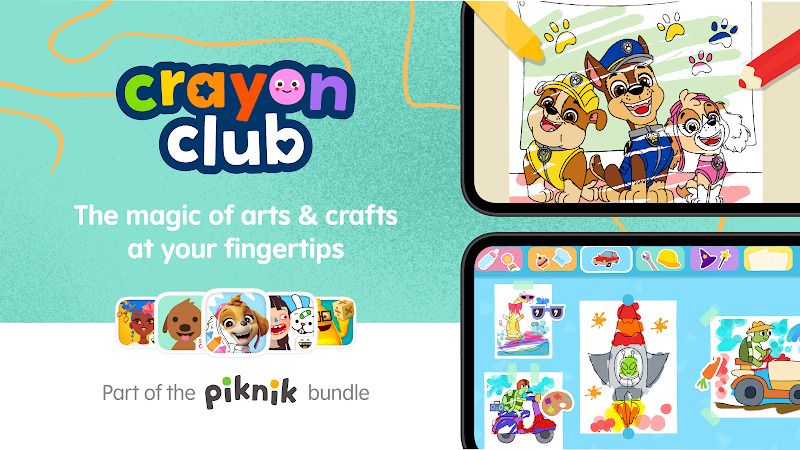 Crayon Club is a pocket-size art studio designed for children who can't even reach high enough to open the real crayon box without tipping it over on the carpet. Developed by Piknik, bundled inside the popular Piknik kids-app subscription, the title is the distilled antithesis of the mayhem that is painting, glitter and stickers, into a serene, mess-free, touchscreen playground featuring the world's favorite rescue pups. Instead of racing against a clock to beat a high score, players are encouraged to slow down, pick a picture and just breathe color into it, a tap or scribble at a time.