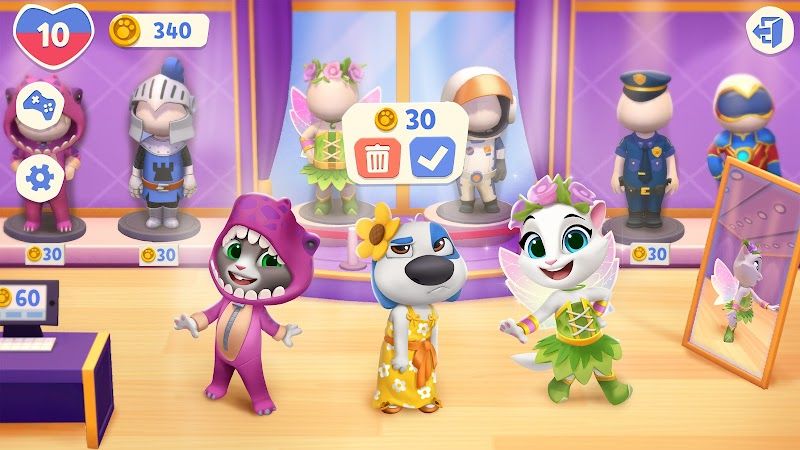 For completists, a 200-page sticker album returns accompanied by augmented-reality hooks. Hover your camera over a completed page and the 2-D sticker blows up into a 3-D model that can go through poses on your living-room rug. Swipe the screen and flick your finger on your device to trade duplicates with friends (an elegant hack that takes the form of an ultrasonic tone, rather than requiring Wi-Fi or NFC). Finishing whole themed pages unlocks retro costumes from the original 2014 talking Tom era, a valentine of sorts to reluctant parents who have inescapably been pulled into this universe since their toddlers first tapped on the original.